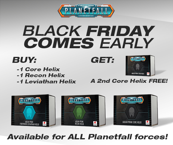 | | FREE 2nd Core Helix with new Firestorm Planetfall offer Every great sci-fi force needs a solid core, and with our 10mm scale Planetfall massed battle game we've put a deal together that makes it insanely easy to build a magnificent fighting force. Buy a Core Helix, Recon Helix and awesome Leviathan Helix package and we'll throw in a second Core Helix for FREE. The sum total of these four Helixes makes for a most impressive sight on the battlefield. So don't hang about Commanders, grab your deal today.